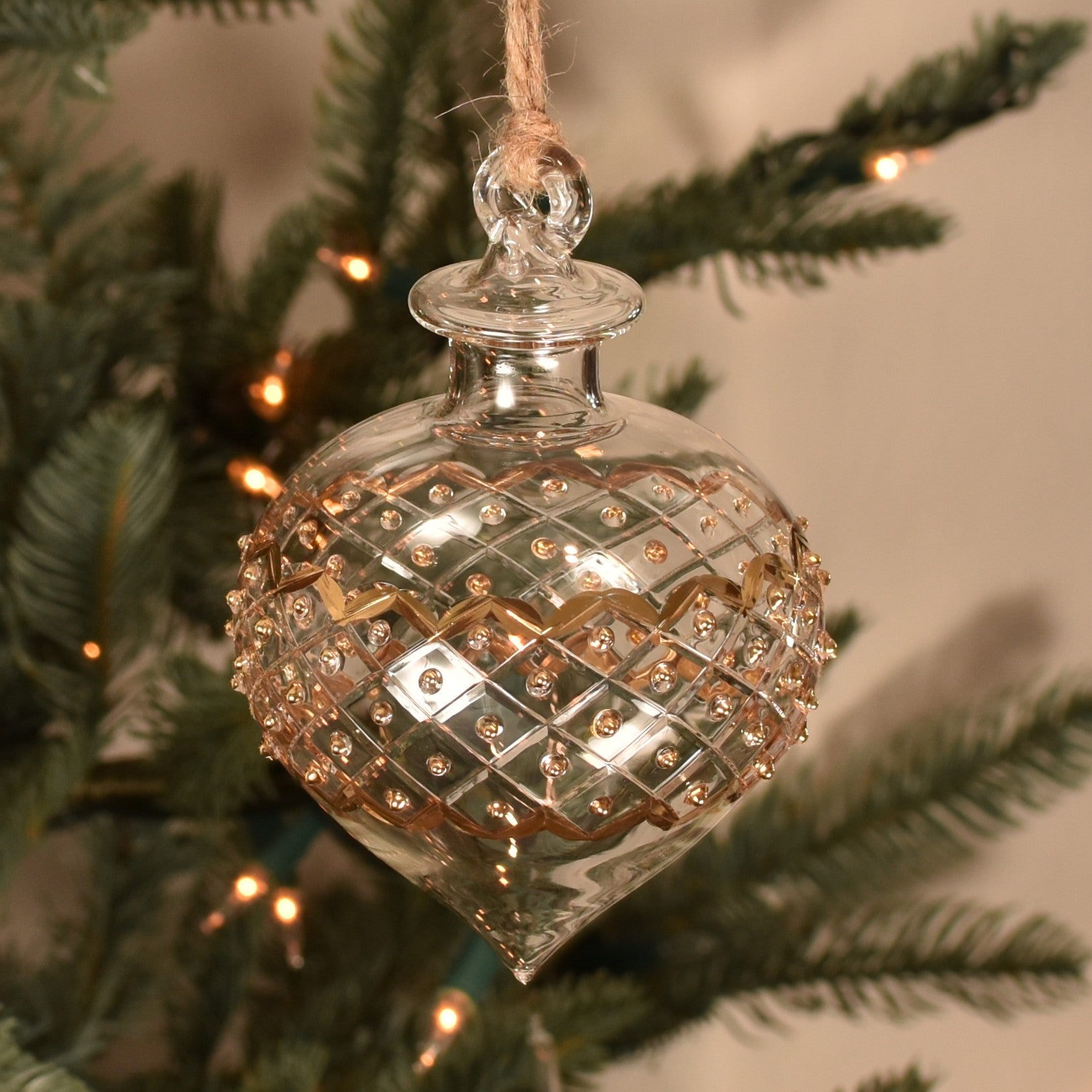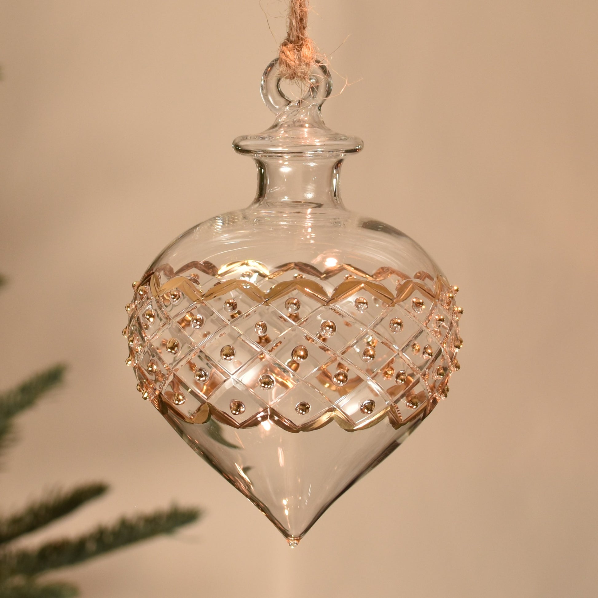 The 'onion' shape bauble is a traditional design shape and looks absolutely stunning when it catches the lights on the tree. Part of our Carnival range, this 'onion' shape bauble features cut glass details, hand painted in gold to highlight the sparkle this bauble gives when hung on the tree.