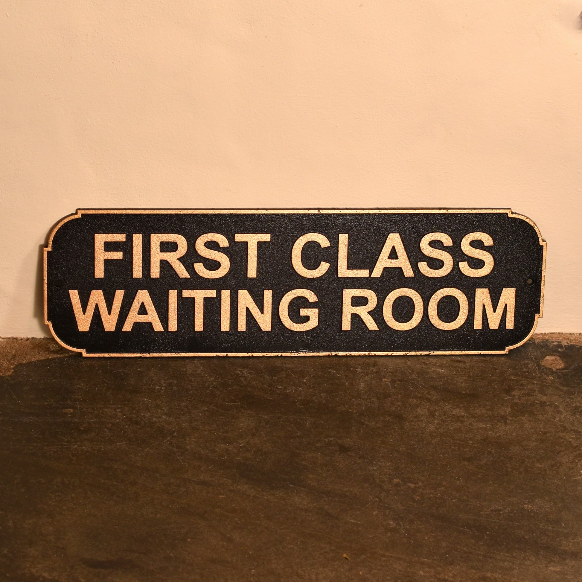 First Class Waiting Room Sign - Black and aged gold