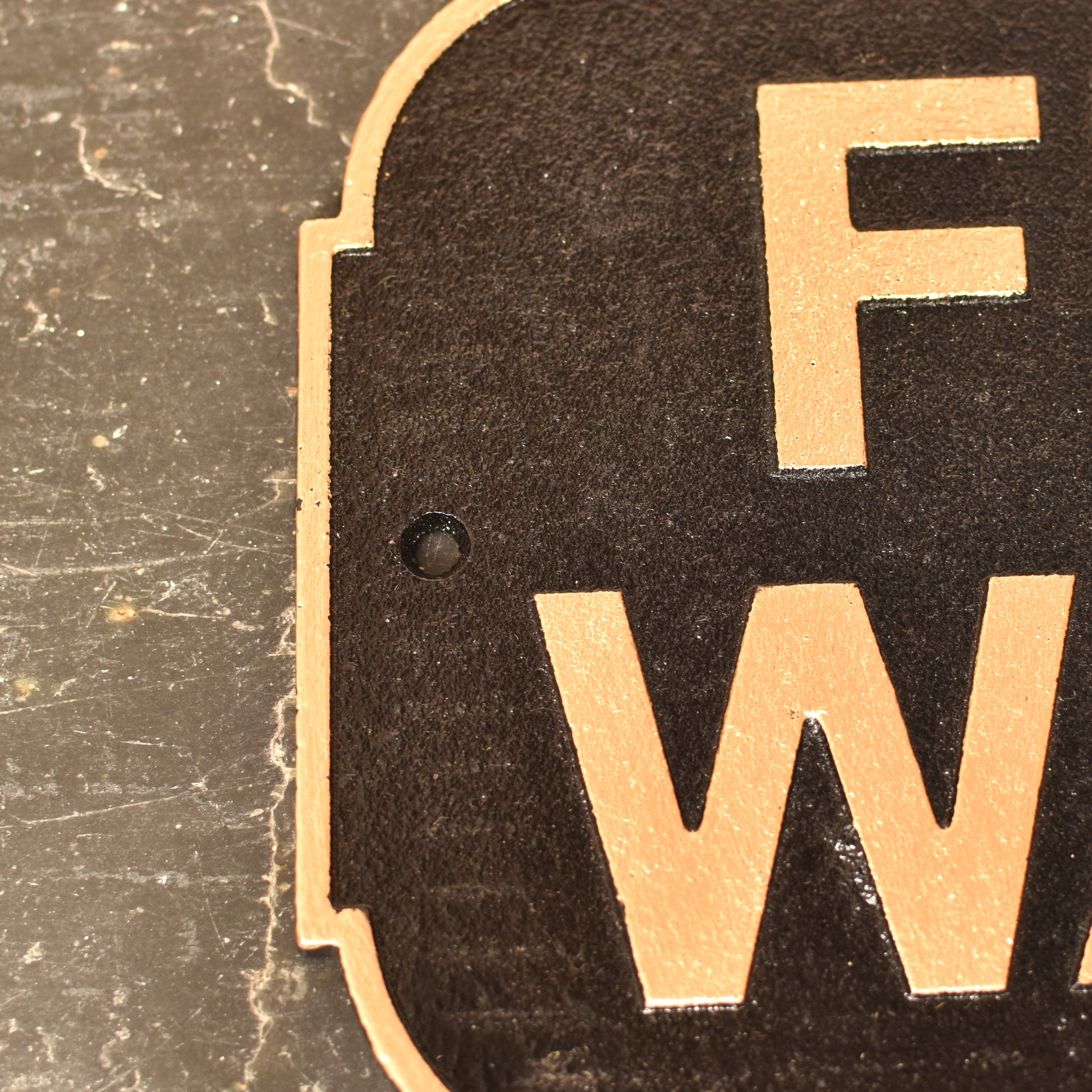 All aboard for vintage charm! This delightful cast iron sign channels the golden age of rail travel with a black finish and aged gold accents.