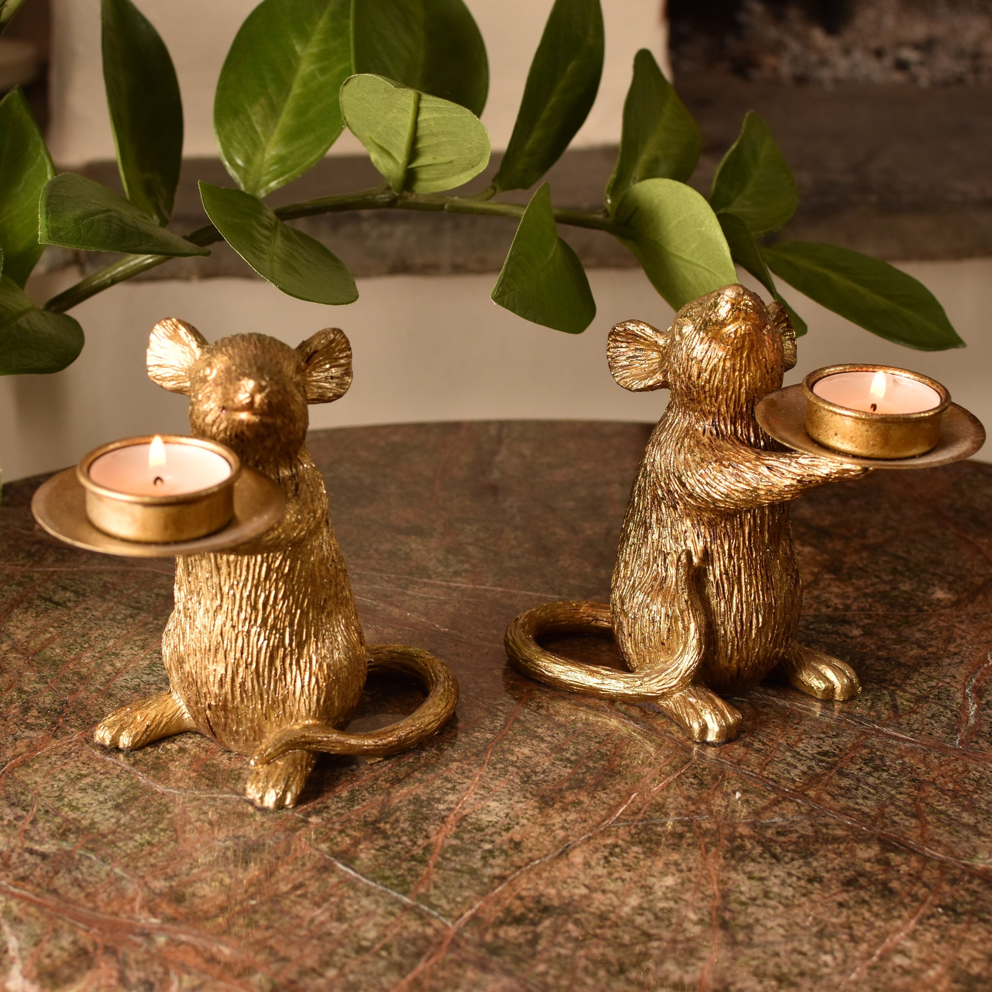 Mice T-Light Holders - Aged Gold